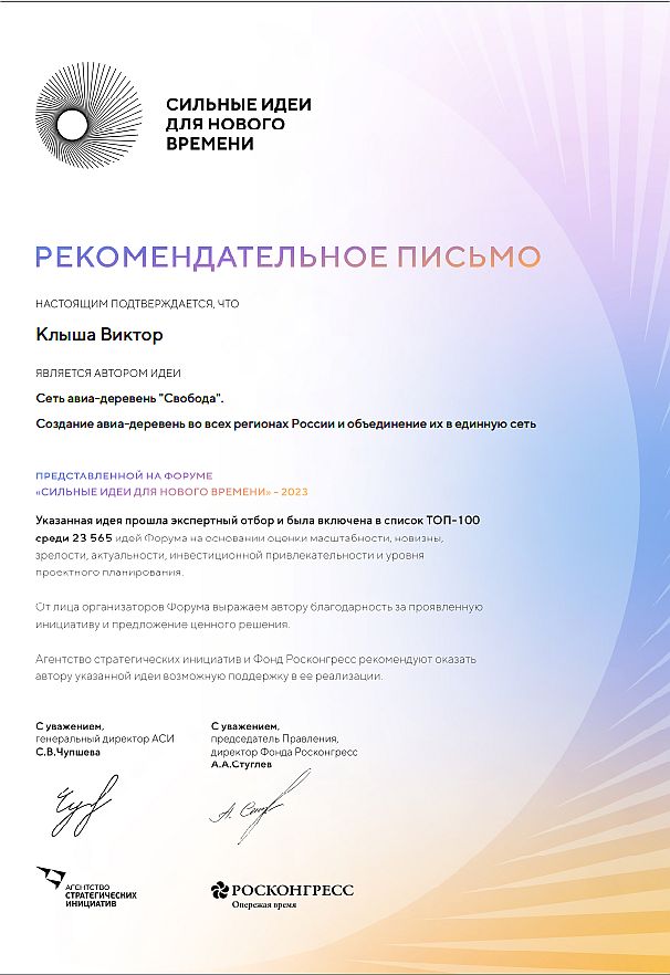 Входит в ТОП-100 на форуме АСИ "Сильные идеи для нового времени" 2023г