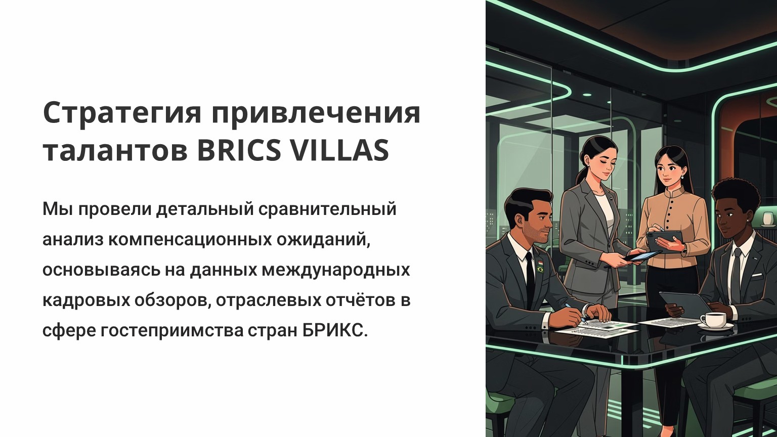 Вы узнаете о наших конкурентных преимуществах на рынке труда и уникальной формуле партнёрства, которая превращает работу в BRICS VILLAS в личную платформу для роста и представительства своей страны.
